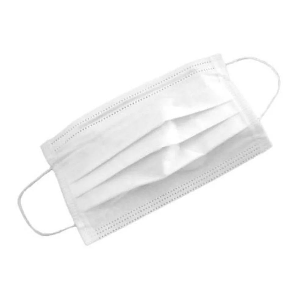 Máscara tripla em tecido não tecido (TNT), sendo duas camadas 100% polipropileno e uma camada de filtro antibacteriano. Com clipe nasal.